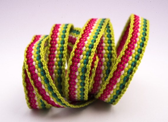 Conocidas como cintas de vaca. De 15 mm. de ancho y en colores brillantes y combinaciones.